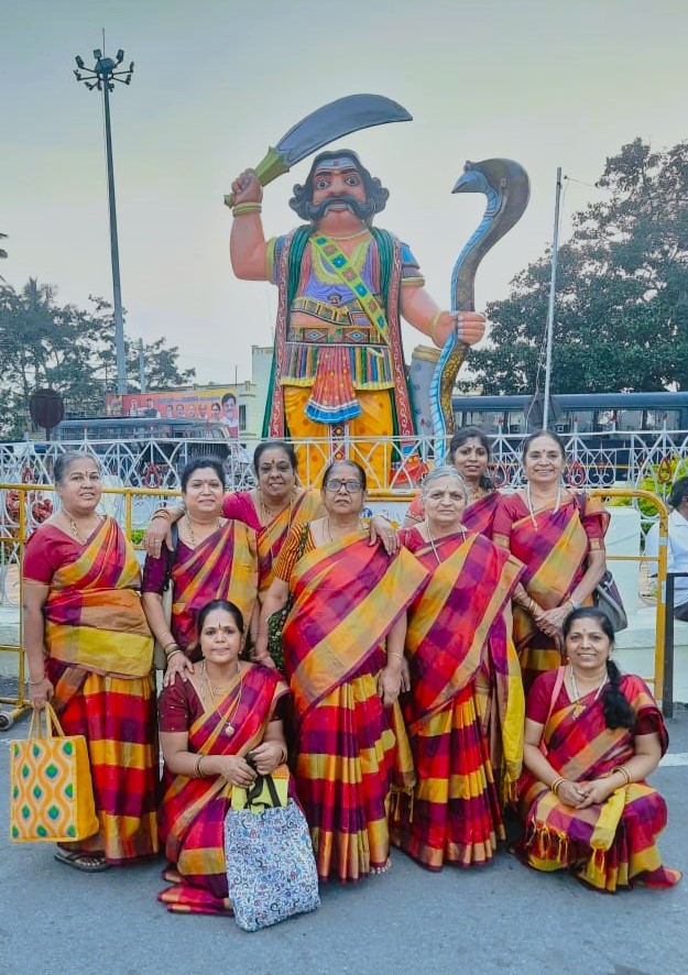 MAHILA MEMBERS OF AKSHAYA VIPRA BHAJANA MANDALI RENDERING PERFORMANCE ON THE OCCASION OF "NAVARATHRI" AT CHAMUNDESWARI TEMPLE , MYSORE. IN RECOGNITION OF THEIR VERY GOOD PERFORMANCE THEY WERE HONOURED WITH A WINNERS CUP AND INDIVIDUAL CERTIFICATES